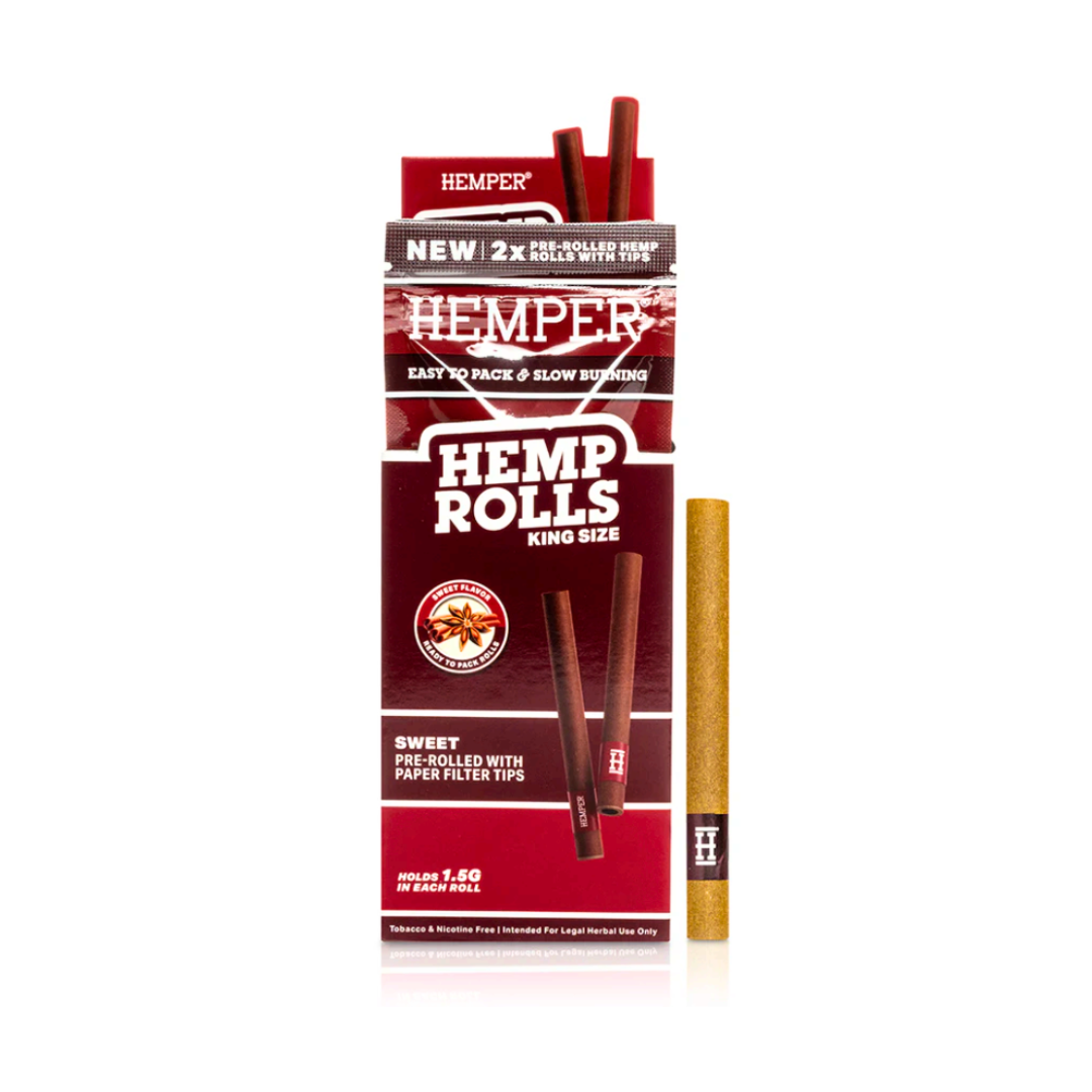 HEMPER – PRE-ROLLED KING SIZE PAPER TIP HEMP ROLLS | 2PK | SWEET