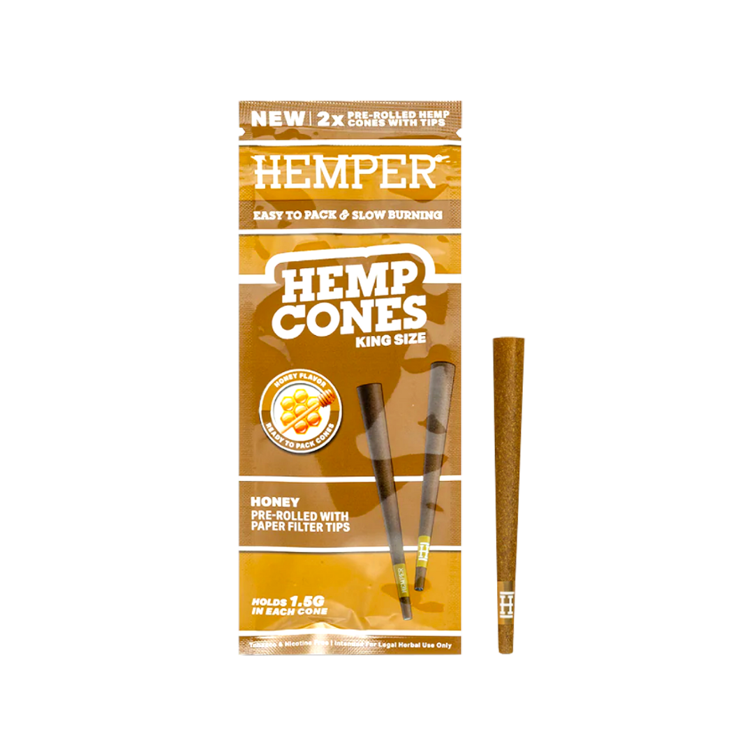 HEMPER – PRE-ROLLED KING SIZE PAPER TIPPED HEMP CONES | 2PK | HONEY