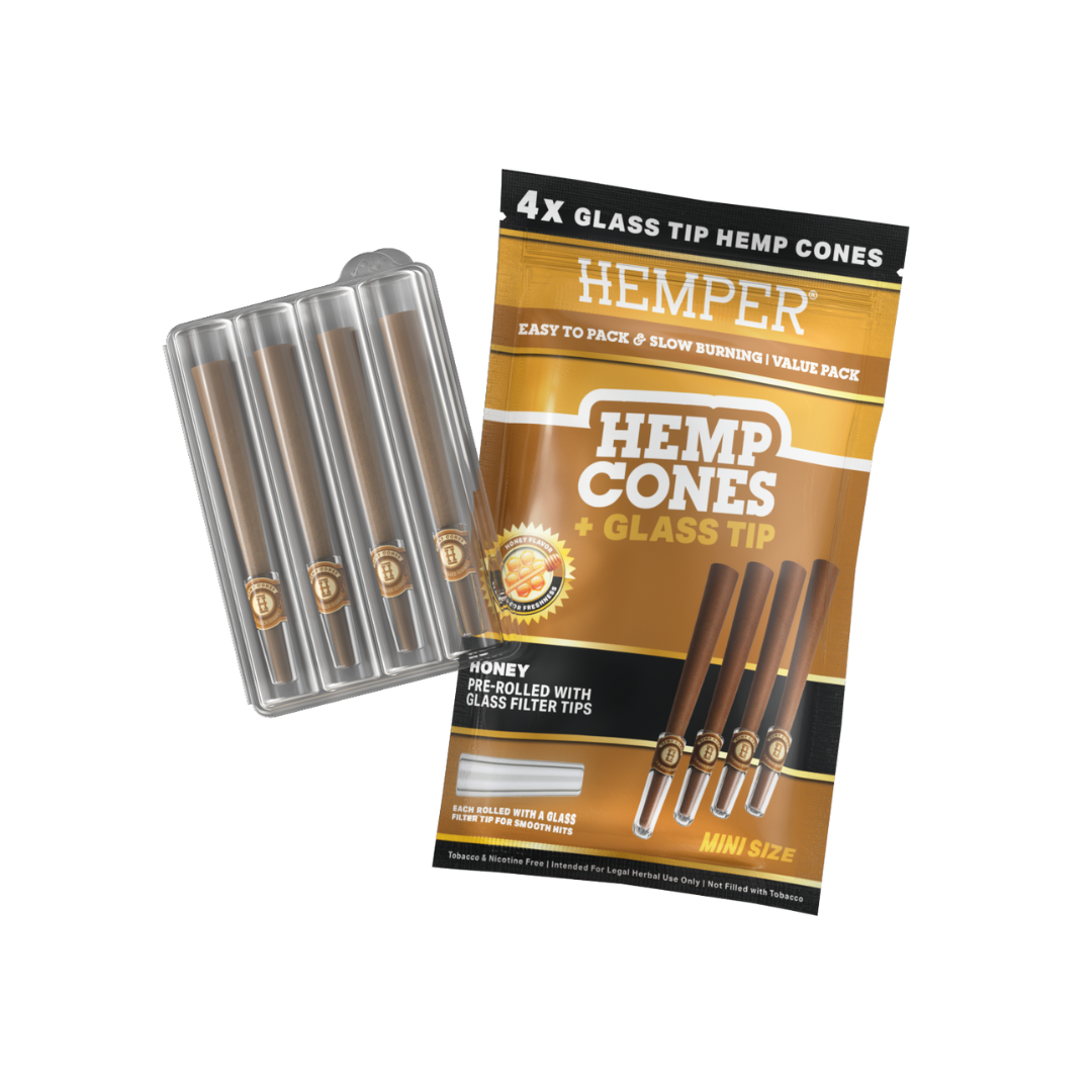 HEMPER – PRE-ROLLED MINI SIZE GLASS TIPPED HEMP CONES | 4PK | HONEY