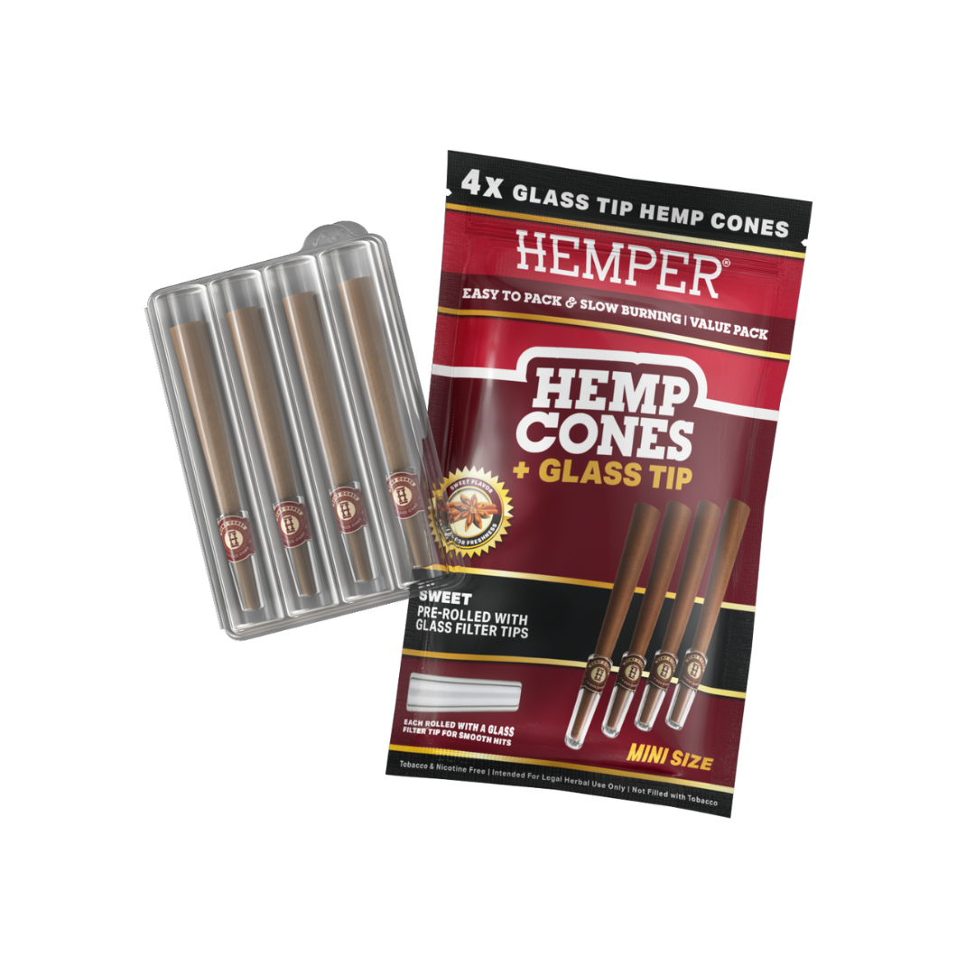 HEMPER – PRE-ROLLED MINI SIZE GLASS TIPPED HEMP CONES | 4PK | SWEET